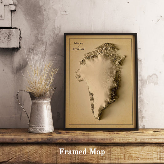 Greenland Shaded Relief Map | Minimalist Topographic Wall Decor