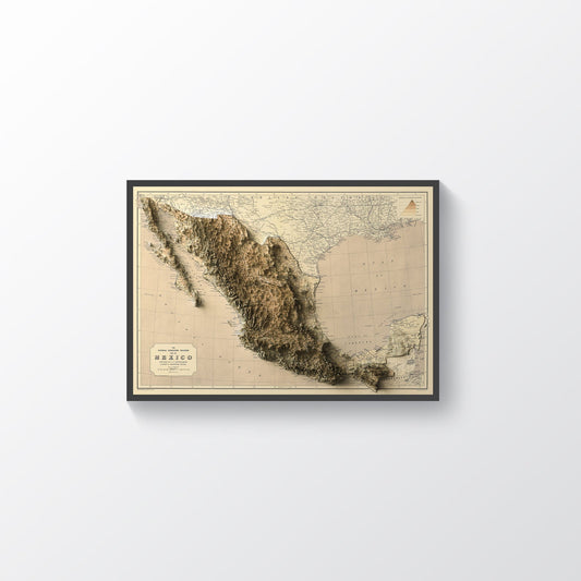 Mexico Shaded Relief Map | Vintage Elevation Map Based on 1911 Original