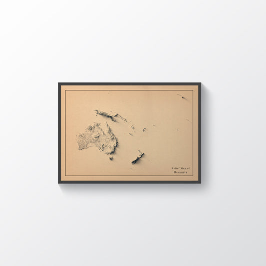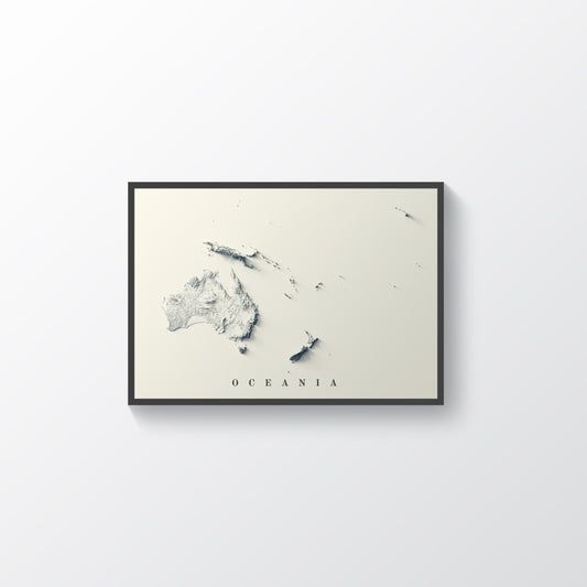 Oceania Shaded Relief Map | Minimalist Topographic Wall Decor