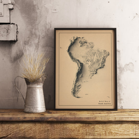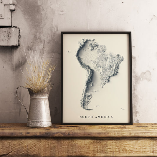 South America Shaded Relief Map | Minimalist Topographic Wall Decor