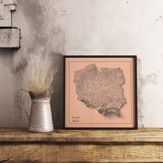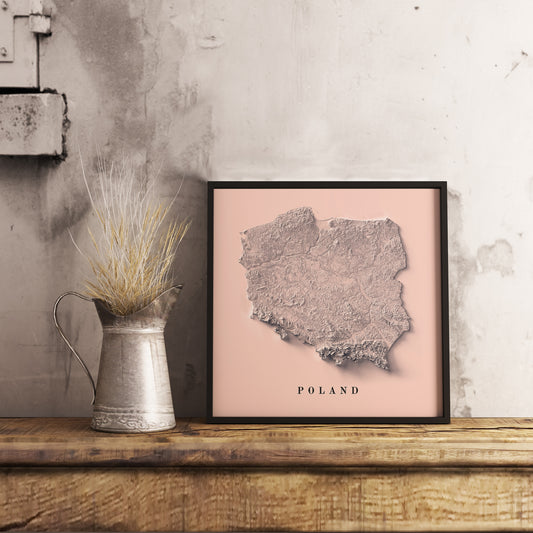 Poland Shaded Relief Map | Minimalist Topographic Wall Decor