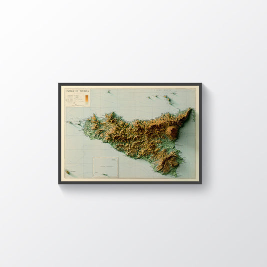 Sicily (Italy) Shaded Relief Map | Vintage Elevation Map Based on 1943 Original