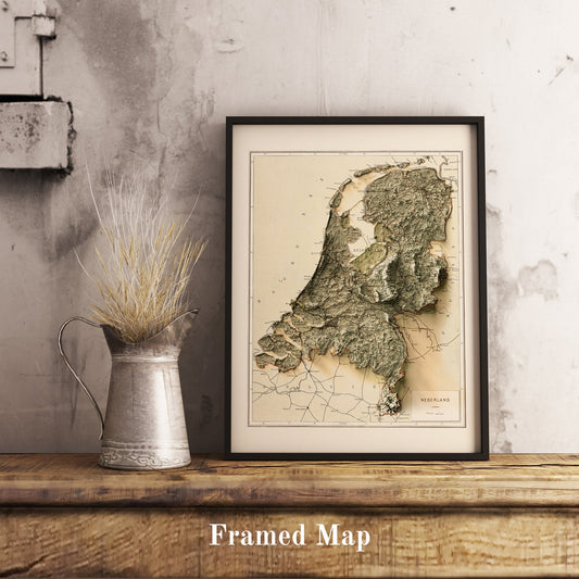 Netherlands Shaded Relief Map | Vintage Elevation Map Based on 1850-1900 Original