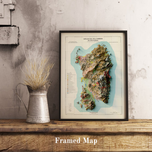 Sardinia (Italy) Shaded Relief Map | Vintage Elevation Map Based on 1966 Original