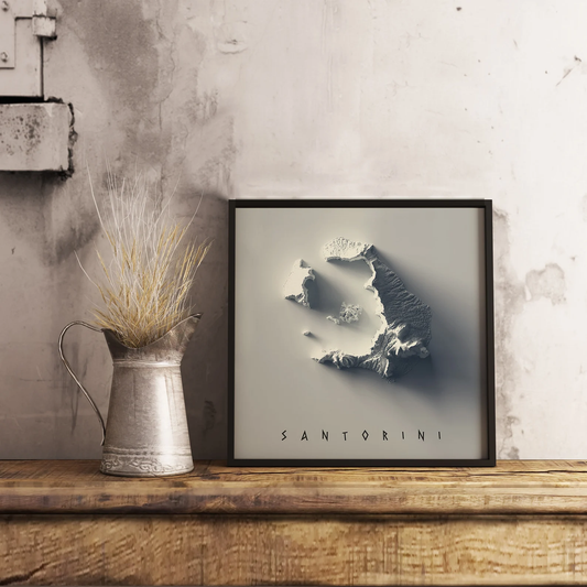 Santorini (Greece) Shaded Relief Map | Minimalist Topographic Wall Decor