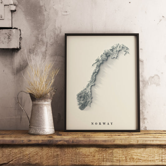 Norway Shaded Relief Map | Minimalist Topographic Wall Decor