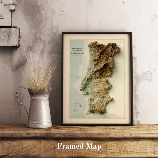 Portugal Shaded Relief Map | Vintage Elevation Map Based on 1906 Original