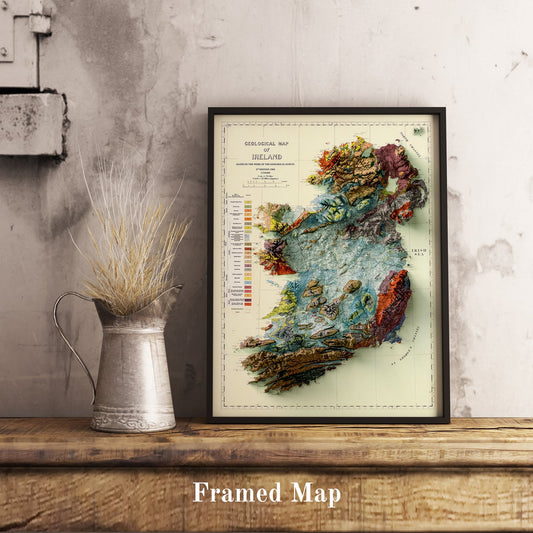 Ireland Geological Shaded Relief Map | Vintage Elevation Map Based on 1961 Original