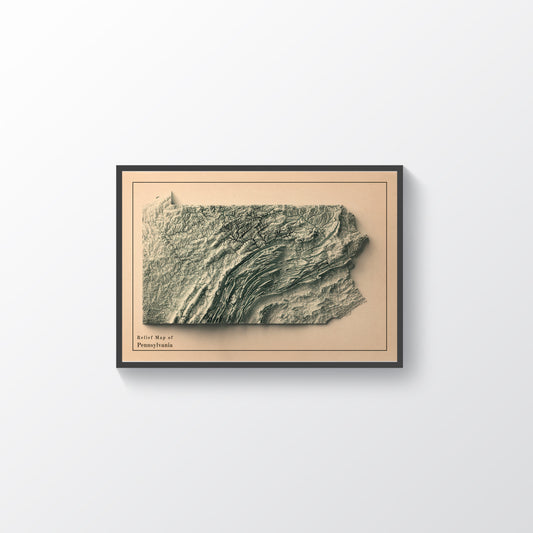 Pennsylvania (USA) Shaded Relief Map | Minimalist Topographic Wall Decor