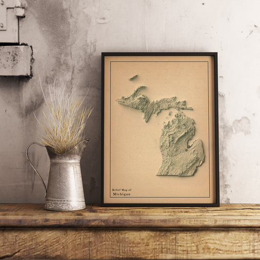 Michigan (USA) Shaded Relief Map | Minimalist Topographic Wall Decor