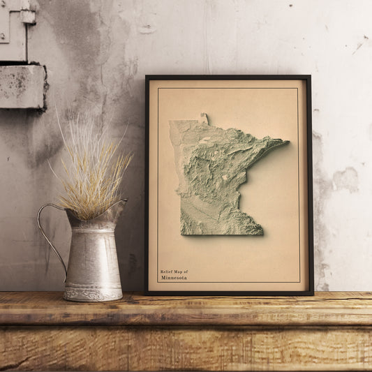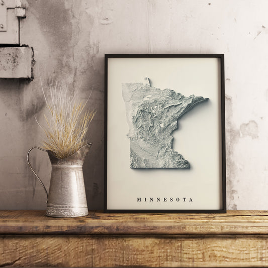 Minnesota (USA) Shaded Relief Map | Minimalist Topographic Wall Decor