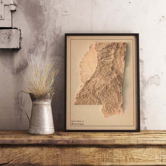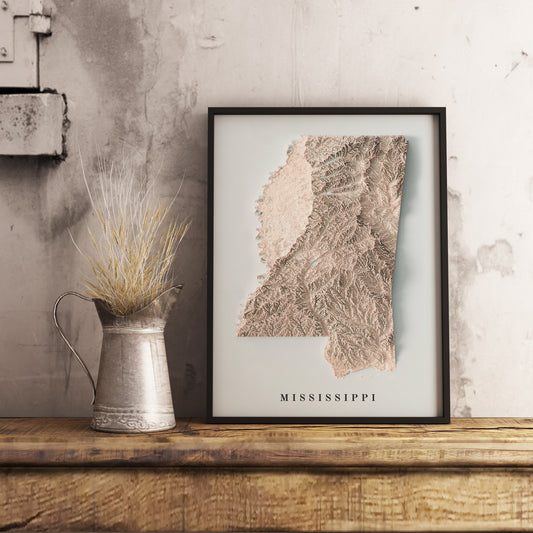 Mississippi (USA) Shaded Relief Map | Minimalist Topographic Wall Decor