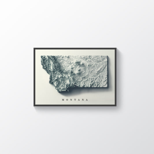 Montana (USA) Shaded Relief Map | Minimalist Topographic Wall Decor