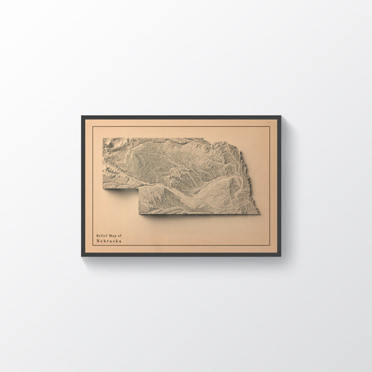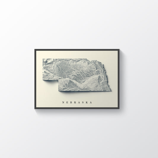 Nebraska (USA) Shaded Relief Map | Minimalist Topographic Wall Decor