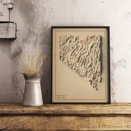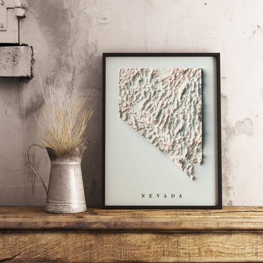 Nevada (USA) Shaded Relief Map | Minimalist Topographic Wall Decor2D Relief Map