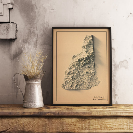 New Hampshire (USA) Shaded Relief Map | Minimalist Topographic Wall Decor
