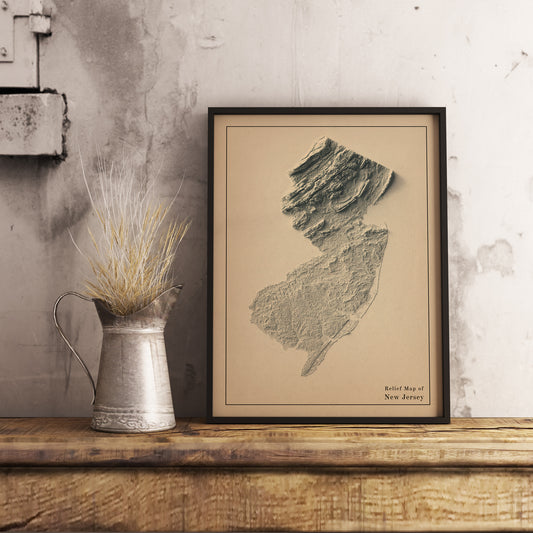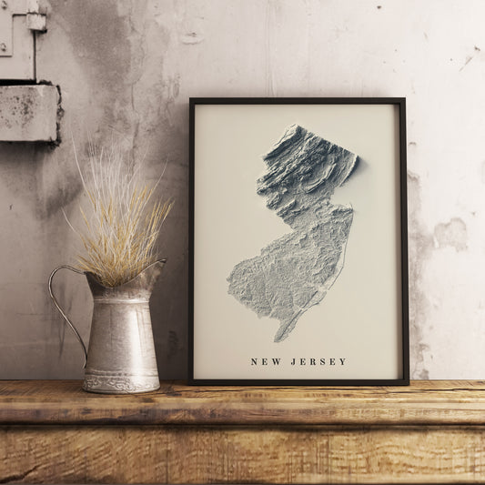 New Jersey (USA) Shaded Relief Map | Minimalist Topographic Wall Decor