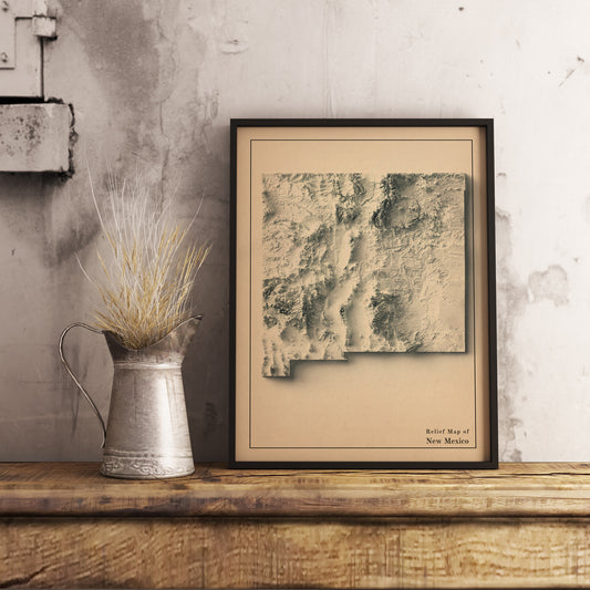 New Mexico (USA) Shaded Relief Map | Minimalist Topographic Wall Decor