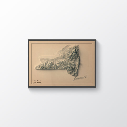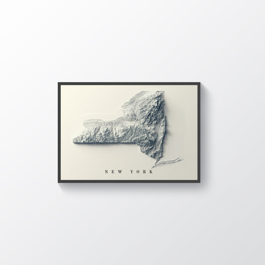 New York State (USA) Shaded Relief Map | Minimalist Topographic Wall Decor