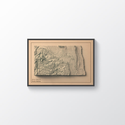 North Dakota (USA) Shaded Relief Map | Minimalist Topographic Wall Decor