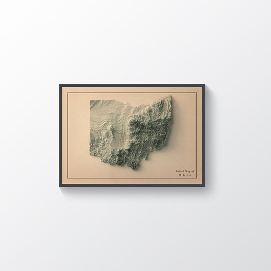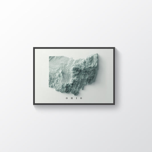Ohio (USA) Shaded Relief Map | Minimalist Topographic Wall Decor
