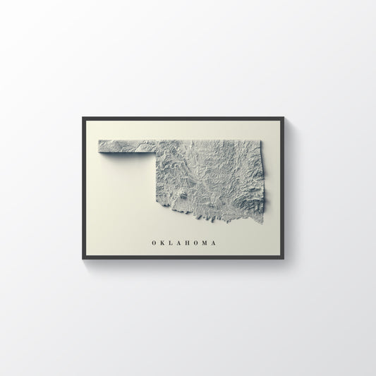 Oklahoma (USA) Shaded Relief Map | Minimalist Topographic Wall Decor